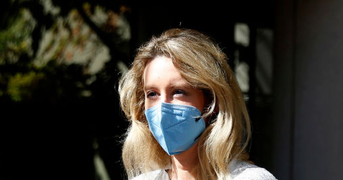 Theranos founder Elizabeth Holmes leaves the Robert F. Peckham Federal Building with her defense team in downtown San Jose, California, on Tuesday, May 4, 2021.