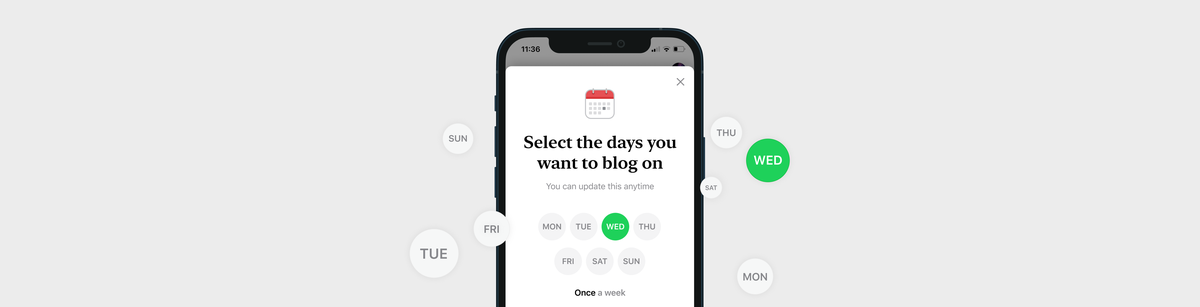 Choose the days you prefer to blog, and a push notification will remind you to write your post.