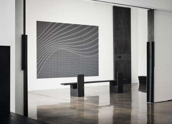 Made from a sound-absorbing synthetic felt material, Turf’s panels, called Scanlines, are made from preexisting images, including photos, art work, or corporate logos and designs. The company’s custom algorithms transform images into black and white, then translate the intensity of that light or darkness at various points in the image into incisions in the felt.