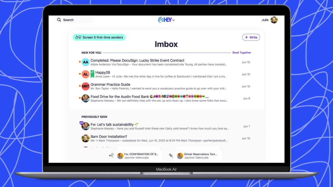 In many ways, the $99-per-year email service from Basecamp is the antithesis to modern tech. Instead of bombarding you with notifications, Hey makes you opt in to them on a per-contact or per-conversation basis. It blocks read receipts and aggressively calls them out as privacy-invading “spy trackers.” Everyone that tries to email you enters a one-time screening process, so that unwanted contacts never reach your inbox. It’s a calmer take on a email from a company that’s long been wary of tech products that monopolize our attention.