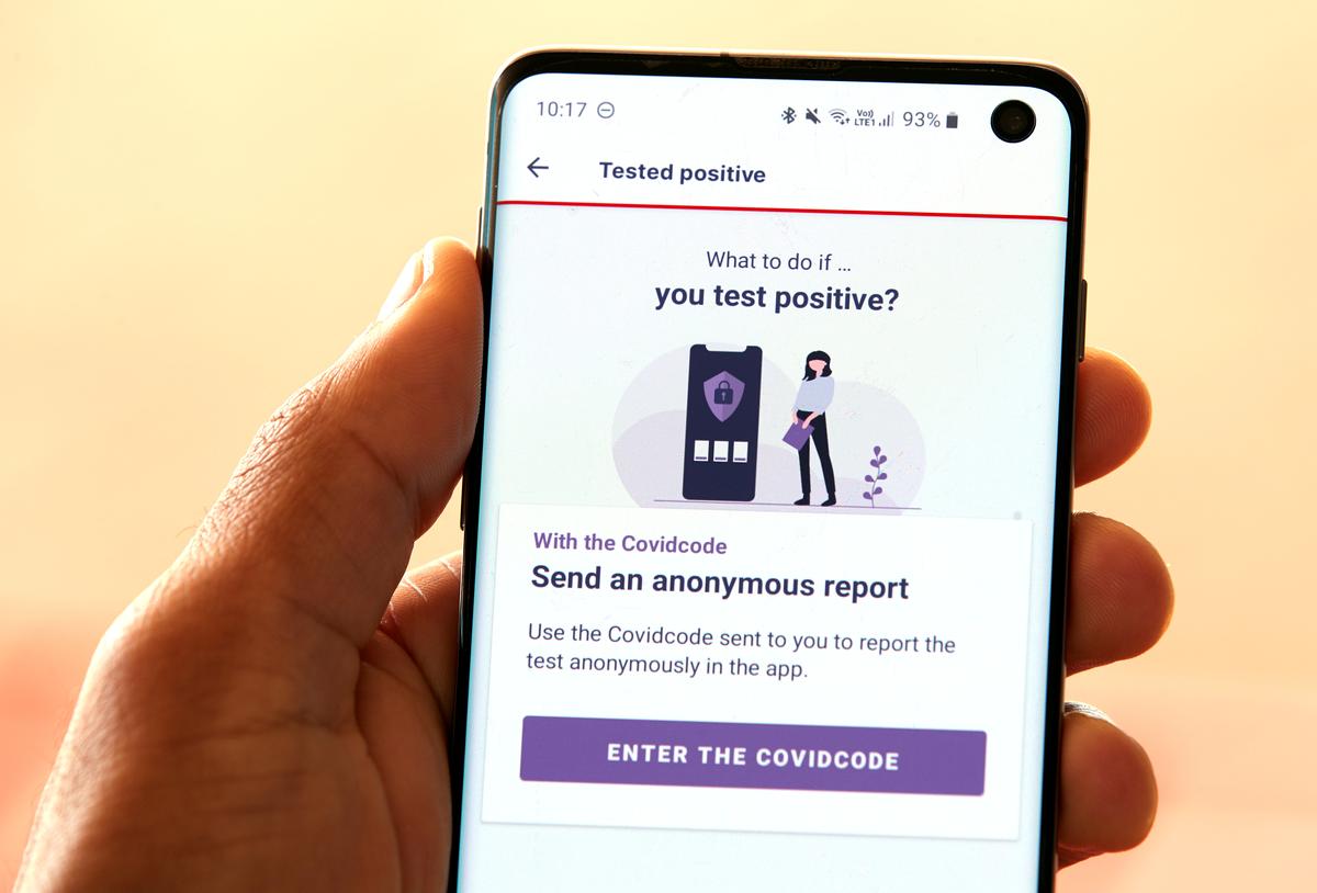 FILE PHOTO – An EPFL staff displays the tracing application “SwissCovid” on his mobile device on the second day of the pilot for the app based on Google and Apple protocols during the coronavirus disease (COVID-19) outbreak at the Swiss Federal Institute of Technology Lausanne in Lausanne, Switzerland May 26, 2020. REUTERS/Denis Balibouse