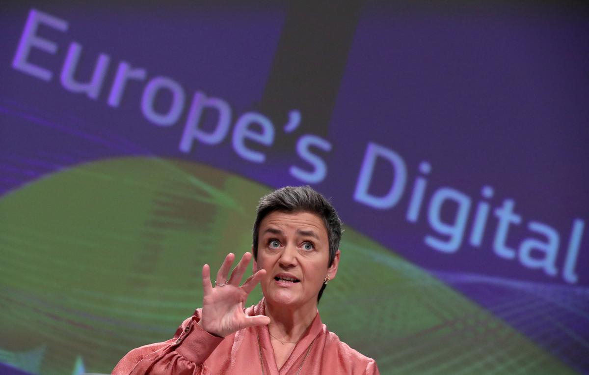 FILE PHOTO: European Commissioner for a Europe Fit for the Digital Age Margrethe Vestager speaks during the presentation of the European Commission’s data/digital strategy in Brussels, Belgium February 19, 2020. REUTERS/Yves Herman