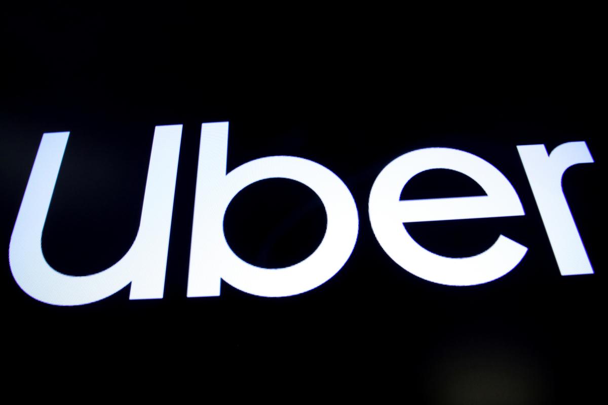 FILE PHOTO: A screen displays the company logo for Uber Technologies Inc. on the day of it’s IPO at the New York Stock Exchange (NYSE) in New York, U.S., May 10, 2019. REUTERS/Brendan McDermid