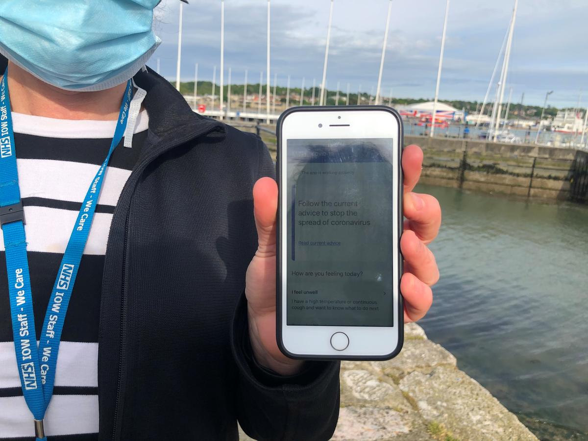 FILE PHOTO: UK National Health Service employee Anni Adams shows a smartphone displaying the new NHS app to trace contacts with people potentially infected with the coronavirus disease (COVID-19) being trialled on Isle of Wight, Britain, May 5, 2020. REUTERS/Isla Binnie