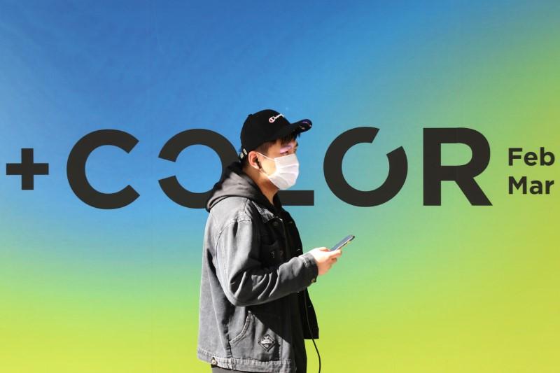 FILE PHOTO: A man, wearing a protective mask, checks his mobile phone in central Madrid, Spain, March 14, 2020. REUTERS/Sergio Perez